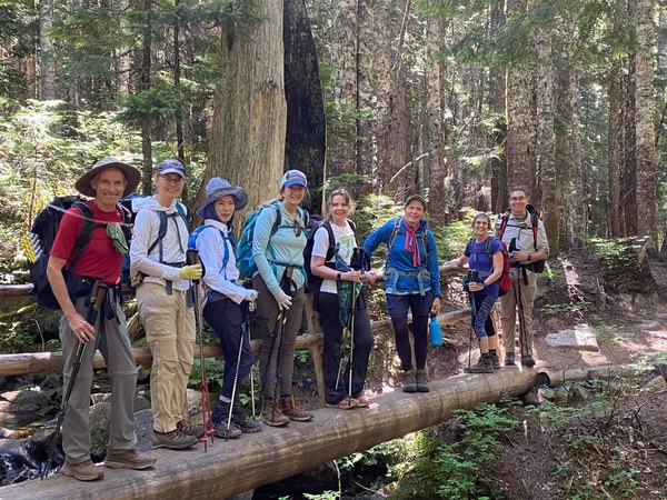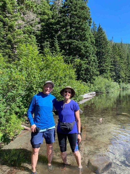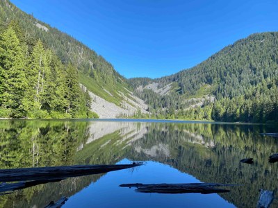 Fabulous group of 9 Mountaineers enjoyed hiking to Talapus Lake and wading in Olallie Lake on a beautiful July Thursday morning.