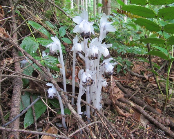 Light rain most of the evening. It was too warm for rain jackets, so we were wet. The group kept their spirits up and did well. The hikers hut provided respite from the wind on top. On the way down, we found a very large branch across the trail that wasn't there before. Glad to have missed it when it fell. The woods were pretty and there was Indian Pipe along the trail. We had the trail to ourselves, not surprising in the weather. We got we wanted - a good conditioner and good camaraderie. Such a great group.
