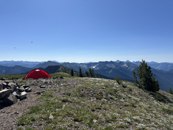 4 day backpack on the Devil's Dome / Jackita Ridge loop in the Pasayten Wilderness. Challenging terrain, ferocious mosquitos, and scarce water. Breathtaking views and brilliant flowers in every direction. 360° sunsets. Worth every ounce of suffering.