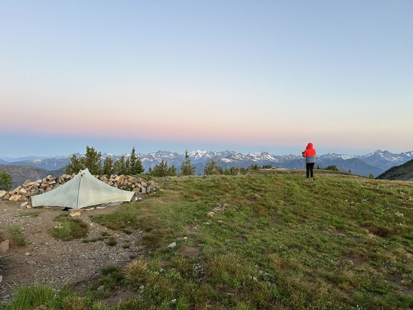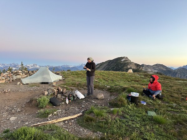 We had originally planned to get all the way to Devil's Dome on day 2, but our progress had been slower than anticipated, so we were all content to stop for the night at Devil's Pass. We had to hunt for water, but we found a tiny, tiny spring at 48.81427, -120.85246.