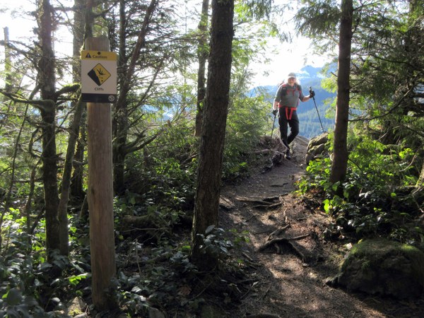 Patchy snow began on the Peak trail from the Balcony around 3,100' near the stream crossing and became all snow at 3,700'. Micro-spikes were needed, even on the upper slopes where the snow was soft and slippery. It appeared to be three to four feet deep and a soft cornice was on the summit. Stayed a safe distance from the edge! My gaia gps showed 8.5 miles rt and 3,312' gain.