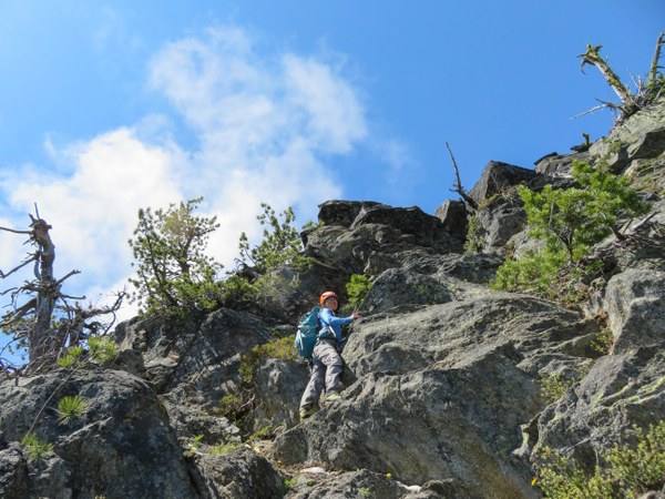 The last bit of scrambling to the summit was fun and was Class 3. I have never seen so many clumps of tweety lewisia, a most beautiful wildflower.