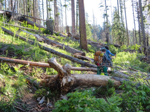 | 9:15:00 AM | 2:45 | Depart ridge heading down into basin (begin off-trail) |