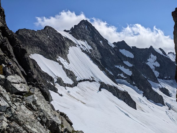 - Sharkfin Col was still snowed in. It wasn't too bad scrambling to the col