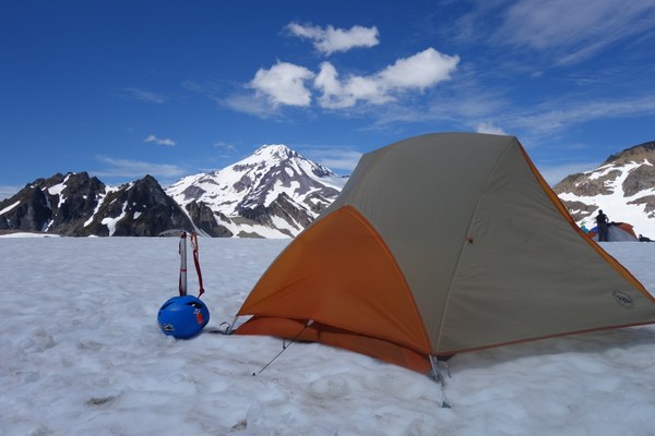 Other running water sources were found on the traverse below the col maybe 10 min before camp or further up on a lake forming at the base of the White Chuk glacier. We did not need to go get any water there though as the pond provided what we needed. After dinner still enveloped in the fog, we retreated to our tents.