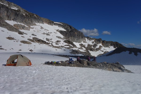 y then and there were perfect conditions for plunge-stepping. We were back at Glacier Gap at 2 PM where we filtered more water and then headed back to camp which we reached a little before 4 PM. A 10 miles and 11- hour day camp-to-camp including all the breaks. Many took naps or sunned on the rocks. We all had a lovely evening time under clear skies and a good night sleep.