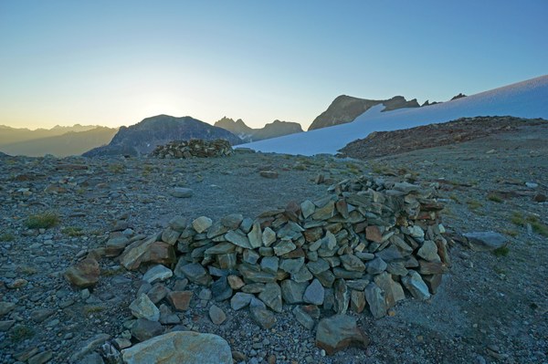 - Left camp just before 5am with headlights. Followed the rocky basin up to Glacier Gap not taking the shortcut through the cliffs.