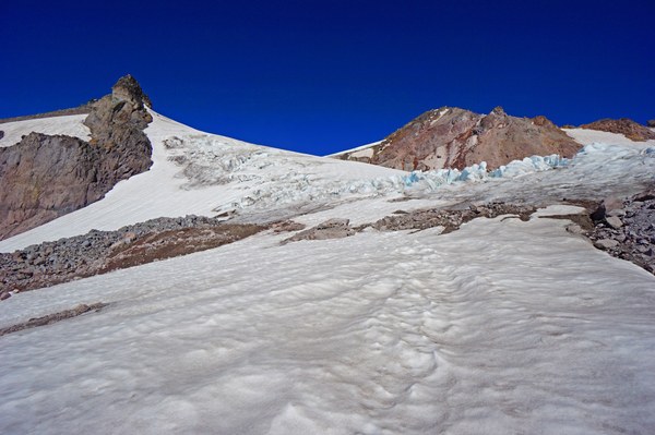 - Didn't encounter continuous snow until above Glacier Gap traveling along Geradine Ridge, to the right of the scramble route.