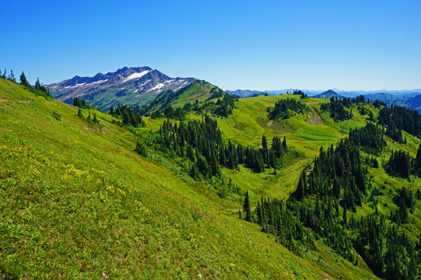 - Once out of the basin, heading along the traverse to White Pass we found tons of sweet berries (blueberries or huckleberries).