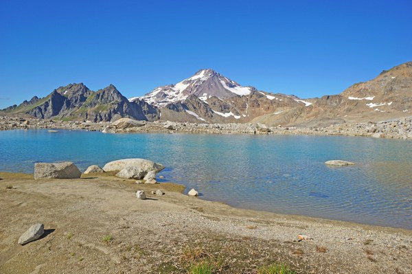 - First views of Glacier beyond a tarn as we moved through White Chuck Basin.