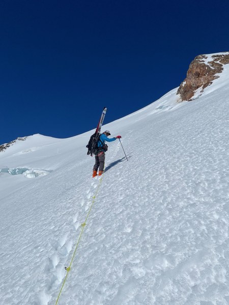 The route itself was in great shape, with just a few crevasses opening up but not posing any difficulty.