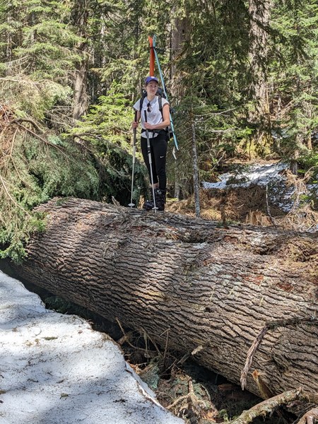 The trail had massive windfall on it, necessitating a sharp eye and perhaps a bit of GPS help to stay on route. I just picked the last devil's club thorn out of my hand.
