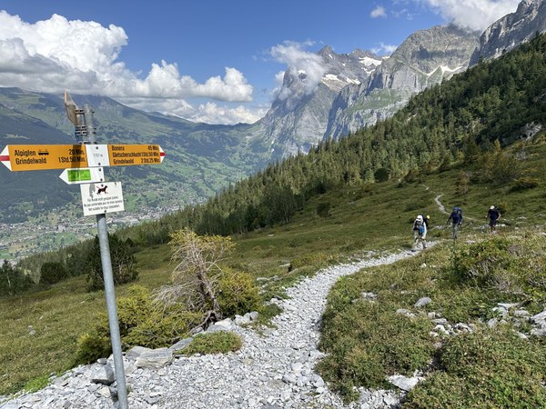 Back on the valley floor, we headed downhill, trekking past the car-accessible Hotel Wetterhorn and the gondola-accessible Pfingstegg. Both were very busy with tourists, but we took advantage of the restaurant deck in Pfingstegg to take a break.