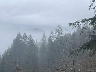 I took the Connector trail rather than continuing to the main trailhead because I wanted the extra mileage for conditioning. It was a rainy, chilly morning with fog in the valley and no other cars at the parking area when I arrived about 8:30. At 2.4 miles the Connector joins the Granite Creek trail and then proceeds along the creek for a short distance before angling upslope and away from the streambed.