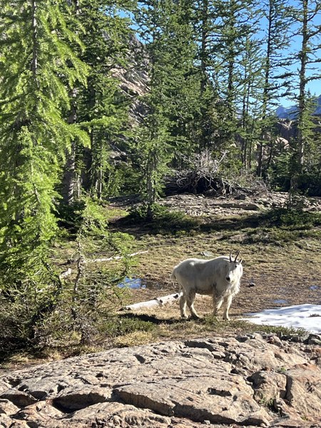 Some snow encountered between Ingalls Pass and the pond and during the final gully scramble above Lake Ingalls; snow covered about 25-30% of the route from Ingalls Pass to the notch at the start of the rock climb. Snow coverage and depth varied and folks punched through a few times. After Lake Ingalls, we kept left and scrambled up mostly on rock until about 7,100 ft. Managed reasonably well without crampons or microspikes and with some folks in trail runners.