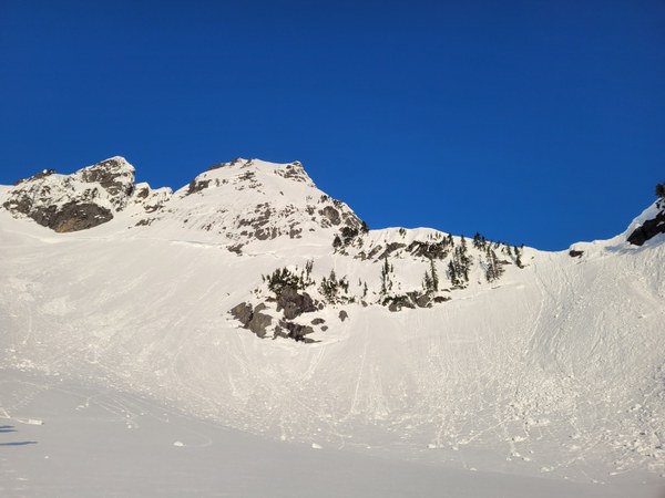On the approach, we saw lots of assorted avy debris from the last couple of weeks, including no doubt some from the warm Wednesday this week, many in the basin right below Chair.