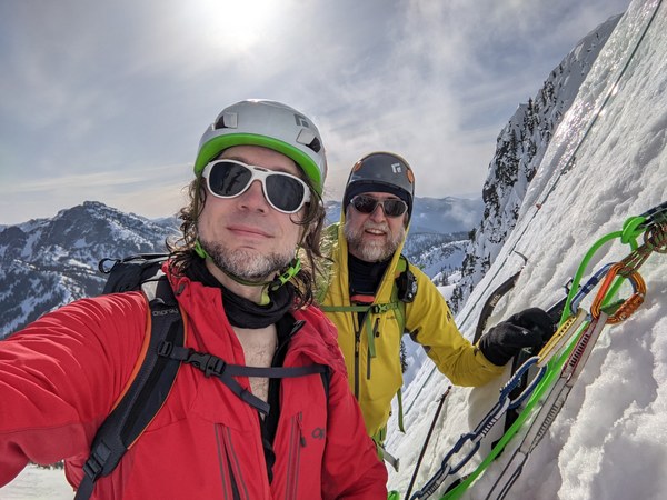 Overall, it was a good day out, although there were some spicier and gnarlier moments than what we anticipated, and going down was tiresome. Compared to my last year's attempt, which was just about 2 weeks earlier during the season, this definitely felt "late". Chair Peak is condition-dependent to begin with, and a few weeks of a Spring-like weather can clearly make a difference. With melting ice and snow softening up, I definitely wouldn't want to attempt it any later, and even this time of the year is later than usual, likely only possible thanks to the heavier than usual snowfall this winter, and a couple of late-season cold spells that kept it in a climbable shape.
