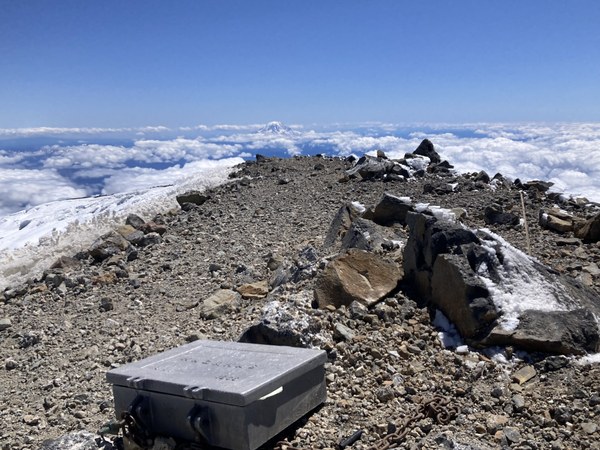 After a long while of slogging, we eventually arrived at the crater rim and Mazamas summit register where we took a break before descending.