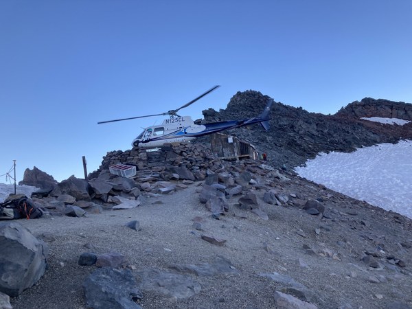 After 2.5 hours a helicopter arrived with a long line and two climbing rangers who transported both of us and our gear to Camp Muir, where Jule was assessed by a medical professional.