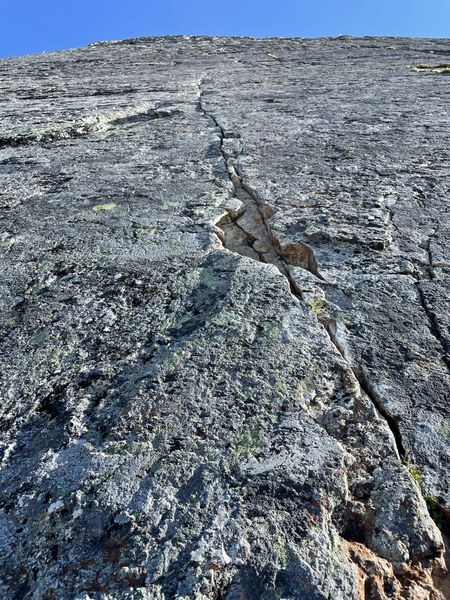 Gear: Mountain Project TG Beta says “Single set of cams from micro to BD #2. Narrow head width of TCU/C3 can give you more placement options than a 4 lobe cam for P4. Doubles in fingers to rattly fingers (BD .3-.5). nuts from medium to RPs. Offsets placed well. 60cm slings and one or two 120cm,” which I think is spot on. For linking pitches 4 and 5 I used a lot more alpines (maybe 3 singles and 2 doubles?) *Linking pitches 4 and 5 was a rope stretcher which I don’t recommend with a 60m.