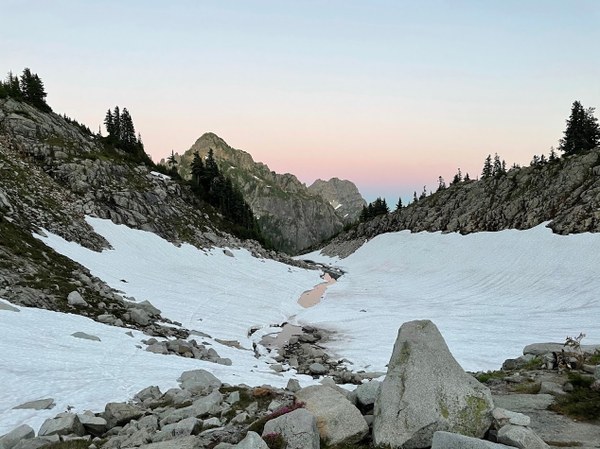 The stream crossings were a bit high on the approach, and after two warm days, were higher on the descent. Consider bringing an extra pair of shoes. Trekking poles were helpful.