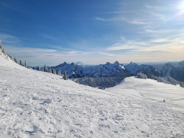 4) Snow going from Panorama Point to Glacier Vista is scoured currently with west winds. Traction advised.
