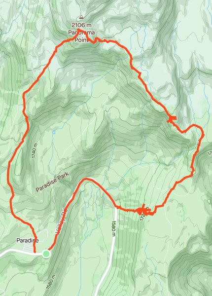 5) Snow to the parking lot from Glacier Vista on Skyline Trail. The trail is broken up by many snowshoers as this is the popular section of the trail.Tracks of the route taken can be seen below: