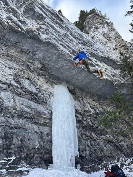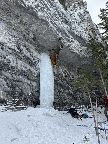 On Friday morning, the group met and headed out to Johnston Canyon. This is an excellent playground for all ability levels. The temps were quite low with my truck was saying negative teens, and beards and moustaches were frosty by the time we reached the base (although Justin and Sherman said it was warmer than it had been the previous day!)