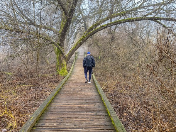 Two of us spent a foggy morning birding at Juanita Bay south, enjoying 43 unique species. We covered roughly 1.7 miles in 100 minutes, 9-10:40.