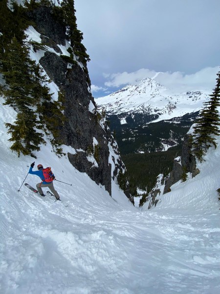 The descent down the Zipper was much more challenging. The entire couloir was much more narrow and the snow firmer. While the rest of the party seemed to have more fun, my descent was a lot of sidestepping with careful turns in between.