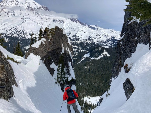 Julia and I had originally planned to ski the Nisqually Chutes, but with the given cloud coverage (and chance of whiteout) on the Muir Snowfield we opted to do something closer to the parking lot and lower in elevation.