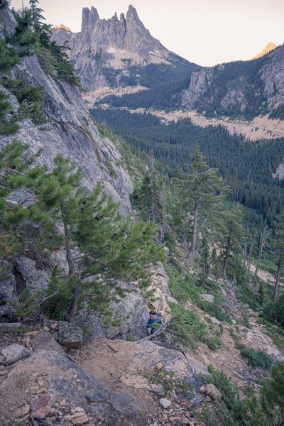 One of my friends from work had been wanting to get into climbing for a while so I had been teaching him rope skills at the office. During a work trip in Japan over the winder we had gotten to do some snow climbing and mountaineering practice, but until this trip I had only only been able to go over rock climbing in theory and do mock transitions in the office. We finally had a window the weekend of AUG 12-14 to actually get out onto some rock. I had been mulling over wanted to climb Spontaneity Arete all spring and summer so we decided we would go up to WA Pass and see how it went.