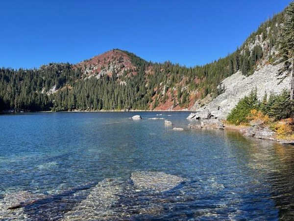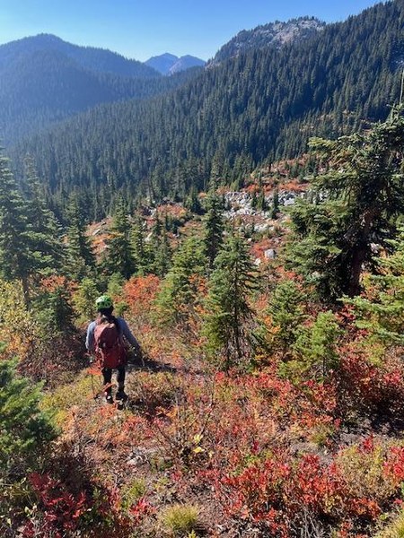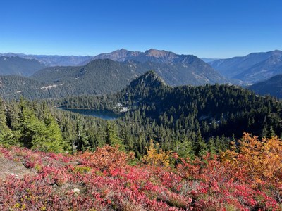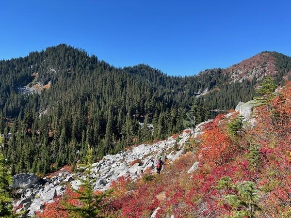 Scenic fall ascent of Lichtenberg via Lake Valhalla and the PCT, starting at Smithbrook Trailhead.