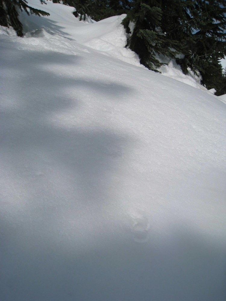 This was a trip with a focus on identifying animal tracks & sign, in partnership with Conservation Northwest. We found one very short & very melted-out trail of an American Marten. We found tracks & sign of other animals as well.