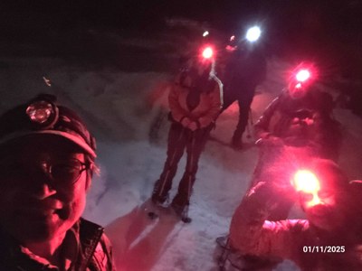 A bit worried by the rainfall during the drive to the trailhead. However, 34º and light snowshowers at the start turned into crisp air with no precipitation within 15 minutes and time for a clothing break. To find solitude & calm from a very large group that started at the same time, we veered off toward Heli's Pond and, on the return, went clockwise around Gold Creek Pond. The night sky was often clear but occasional wispy clouds added drama. Jupiter was intensely bright despite being close to the almost-full moon. Had hoped for a post-trip social stop at The Commonwealth afterward, but the trip ended at 9pm which is closing time at the restaurant. The group enjoyed sharing moonglow, planets and stars together.