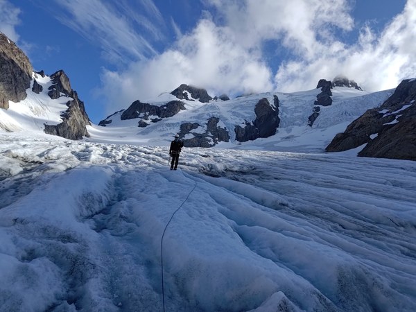 Descending the blue ice.