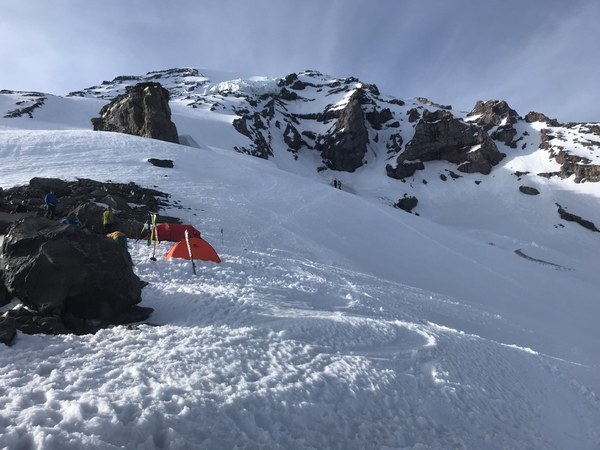 Day 1: mostly sunny and clear. Unseasonably warm (55F at Camp Muir). Night temp just above freezing at camp.