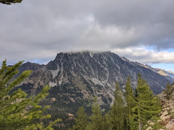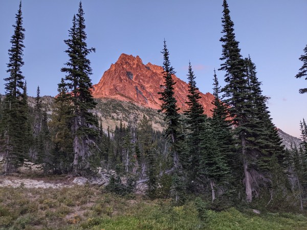 Weather was marginal. The forecast looked sunny 2 days prior but turned to cloudy and partly sunny as well as near freezing temps. During the drive into Ingalls Lake TH sunday afternoon, we could see Mount Stuart but as we got to camp Sunday evening, Stuart was in the clouds and it was also windy making us question if we could climb tomorrow.