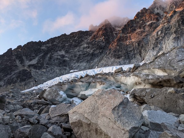 - Water near the base of the route and throughout different parts under Stuart Glacier