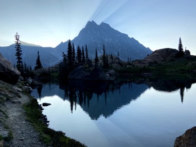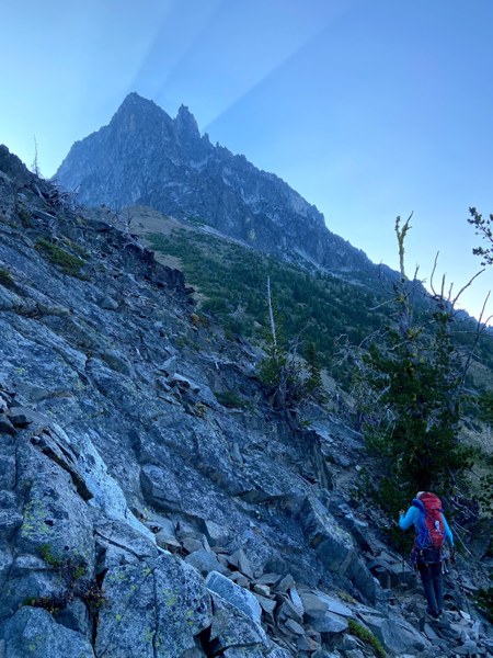 I found that doing ~2 hours of the approach the evening before makes the next day feel much more manageable, and sleeping midway in is much more comfortable sleep that in the car. Thus we left Friday afternoon at 330 pm to get to the trailhead at 6pm. Unfortunately there was a fire on I-90, which delayed us by quite a bit, so we didn't get to camp until around 11pm.