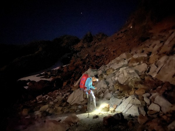 We filled on water and drank our fill before beginning the brutal ascent back to Long's Pass, and double-timed it back to the car at 1am.