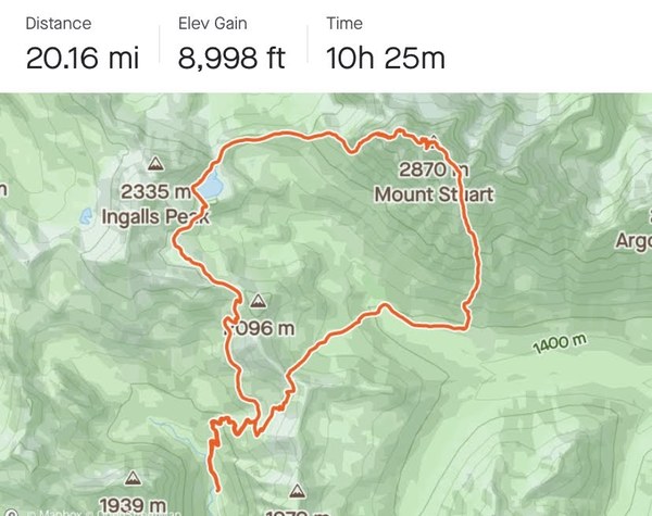 I had never climbed Mt Stuart before, and since I can't do the North Ridge yet, I figured I might has well try a easier technical route. Going through the beta it seemed routefinding (particularly between LJT and the West Ridge Notch) would be the crux of our trip. To keep ourselves light we packed trail runners, rock shoes in case, a 30m rope, and a sleeping bag/pad for bivying.