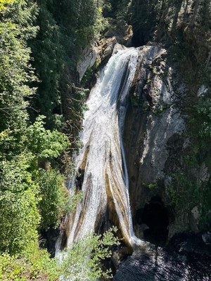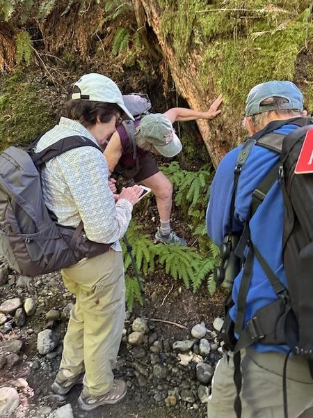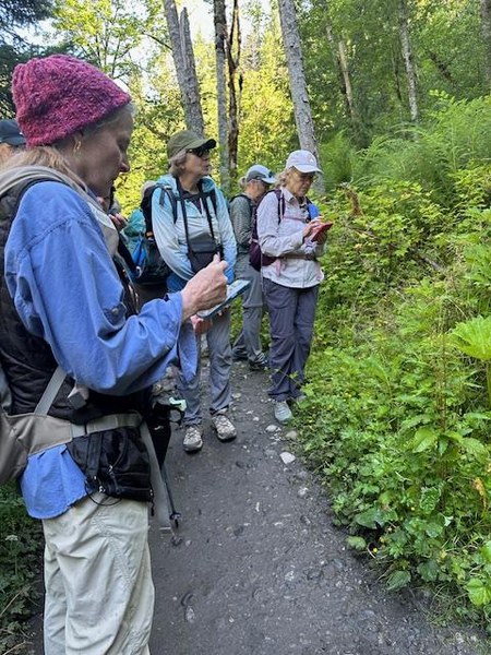 This hike has an amazing variety of lowland forest vegetation as well as the pleasant river and falls. We spent our time identifying the various conifers and ferns as well as many plants/shrubs and a few flowers. The waterfall was flowing at a good rate and we spent some time considering the type (fan) and magnitude.