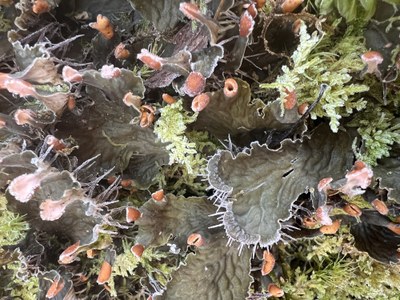 Trails were clear with little mud, although some of the boardwalks were slippery due to the frozen fog. No one fell, but two of us made good use of our hiking poles for added stability. It is evident that this state-owned property in Capitol Forest gets regular maintenance as there was a recently fallen tree that had been cleared from the road.
