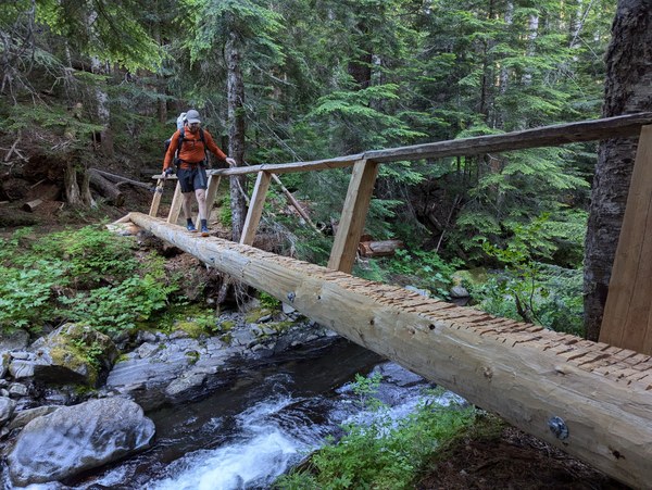 Day 2 was another all-trail day, the main purpose of which was to get us out of the lowland forests and up into the subalpine zone. From Boulder Creek Camp to our stop for the night at Swimming Bear Lake we didn't see any other person, which was a sign of the solitude to come.