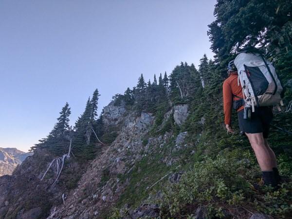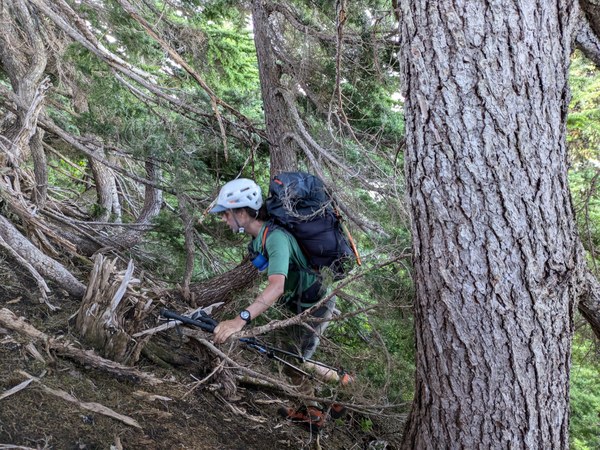 Much of the northern BRT has a well-defined boothpath that comes and goes, and while there had been scrambling and routefinding until now, there hadn't really been much bushwhacking or really difficult navigation. This changes on the way to Dodger Point.