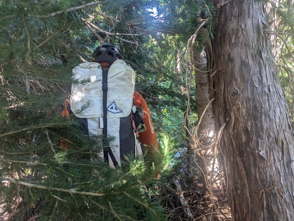 Overall I'd say the Dodger Point exit is more difficult than the northern half of the BRT itself. The routefinding was more nuanced, the brush required more bashing, the pace was slower, and energy expenditure was higher.