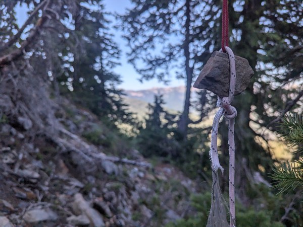 From Crisler's Ladder we were able to make our way to Hanging Rock, which is the oasis in the desert that marks the beginning of the abandoned trail to Dodger Point—meaning much much easier travel! The string for the hanging rock was missing a rock, so I made sure to add a rock back in to ensure its name remains accurate.