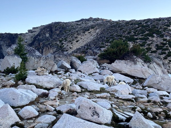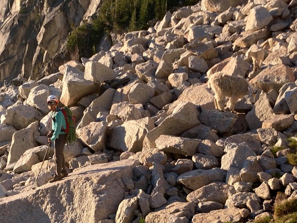 We hoofed to up Aasgard Pass and halfway across the Enchantments, stopping to filter water and admire the views. The bugs weren't too bad, and the goats were pretty chill. We made it to the Prusik Pass without too much effort.