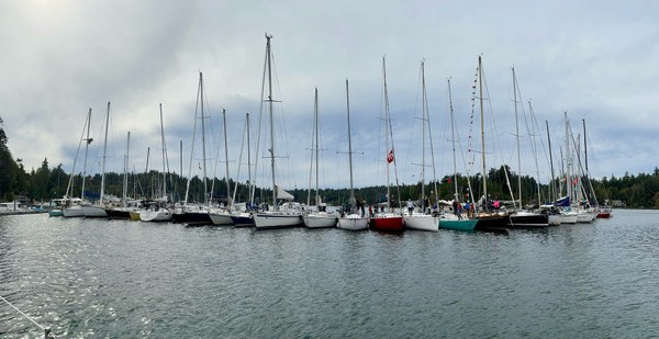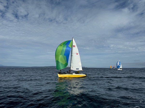The sailing conditions were just right - moderate winds, some sun and not too cold. Our group didn't have a lot of experience, but that didn't phase our captain Alan and his assistant leader Stephanie. They made us feel welcome and capable and ready for a fun day. We all got better working together with every tack and jibe and enjoyed racing in the midst of the fleet adorned with beautiful spinnakers. After the race, we rafted up with the rest of the boats in Port Madison to celebrate the day and the end of the Duck Dodge racing season. That group is a very welcoming community!